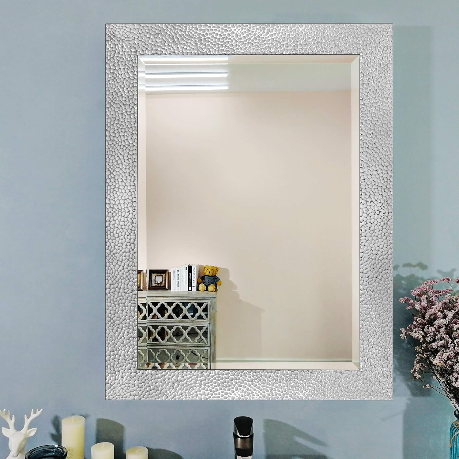 Large Rectangular Wall Mirror With White Cobblestone Frame Design Premium Beveled 1 Inch Silver Mirrors For Vanity Living Room Or Bathroom For